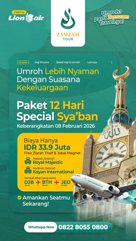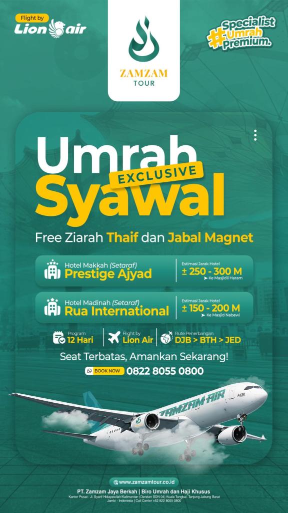 Zamzam Tour Merupakan perusahaan yang bergerak dibidang Pelayanan Ibadah Urmroh dan Haji Khusus yang telah berdiri sejak tahun 2019. Zamzam Tour terus berkomitmen menjadi perusahaan pelayan tamu allah yang terbaik dan Melayani jamaah seperti keluarga sendiri.